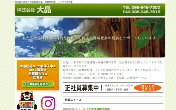当社は熊本県合志市を拠点に、解体工事と廃棄物の再資源化を軸とした事業を展開しています。創業以来、解体を単なる撤去作業と捉えるのではなく、その先にある環境負荷の低減や資源循環までを見据えた取り組みを続けてまいりました。専門資格を有する技術者が多数在籍し、安全性と品質を重視した施工体制を構築。地域社会とエネルギー循環の未来に貢献する企業として、持続可能な解体事業を追求しています。